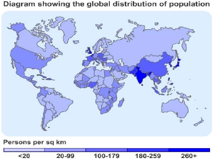 Note! ¥ Be able to locate countries on a map which have a high and low population density ¥ Be able to explain why these areas have a low or high population density ¥ Be able to discuss the problems of low and high population density