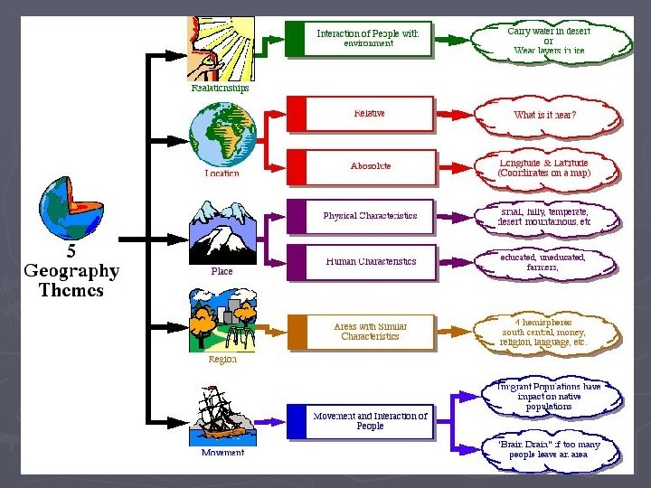 Five Themes of Geography ►Location ►Place ►Region ►Movement ►Human-Environment Interaction