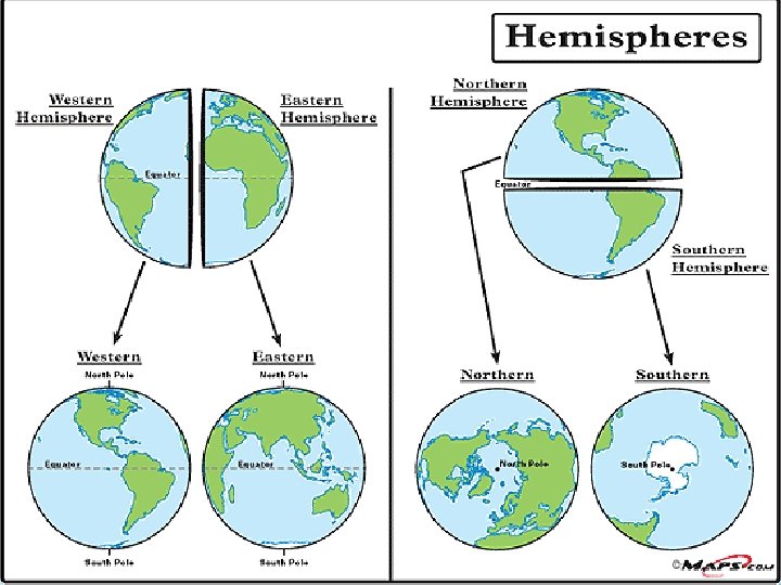 Globe-a scale model of the Earth. Globes show the actual shapes, sizes, and locations of all Earth’s landmasses and bodies of water.