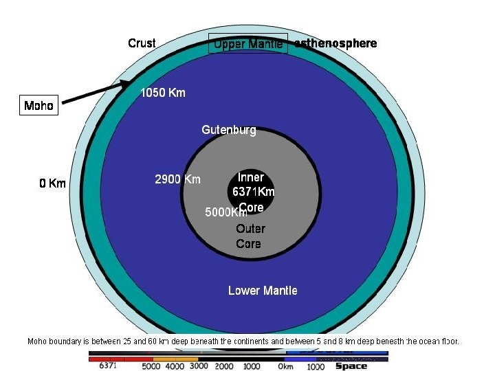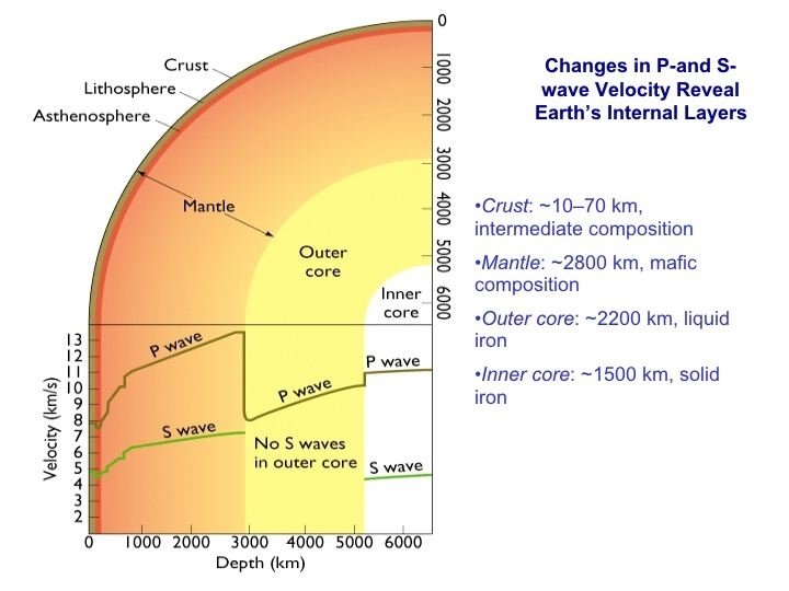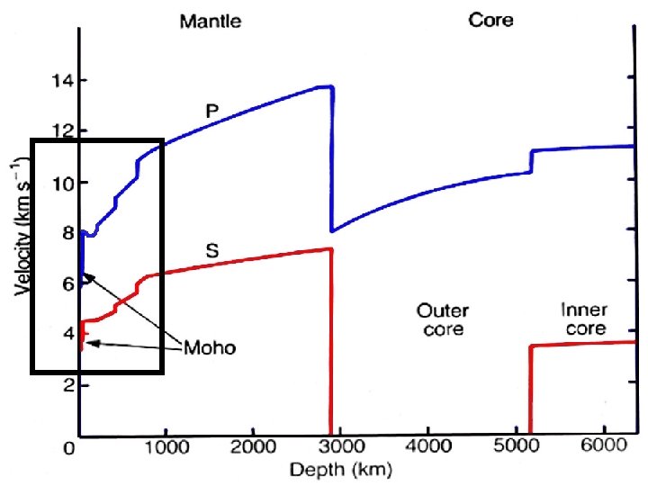 Gutenburg Discontinuity Low velocity zone = asthenophere crust