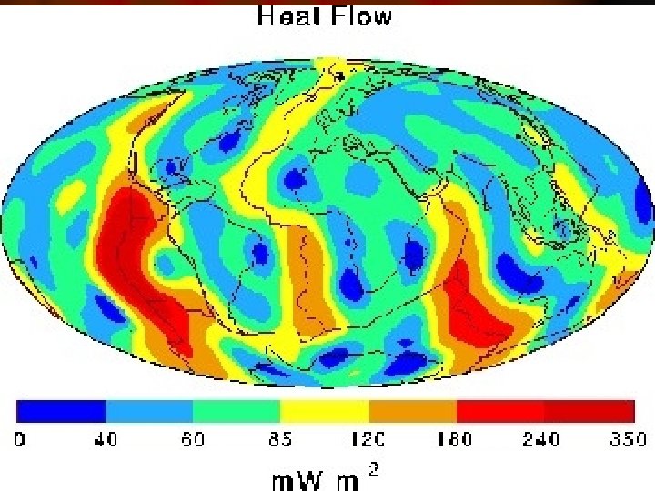 • 70% of heat is lost through oceans • Earth has been cooling off (less and less radioactive fuel) since its beginning. • Most heat created by radioactive decay of U, Th and K