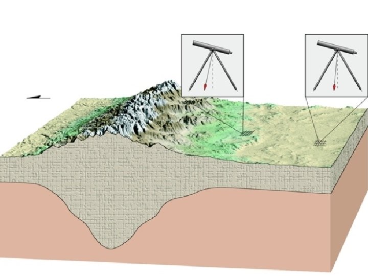 Positive gravity anomaly Negative gravity anomaly Mountain Ore deposit Low density sedments Salt dome (low density