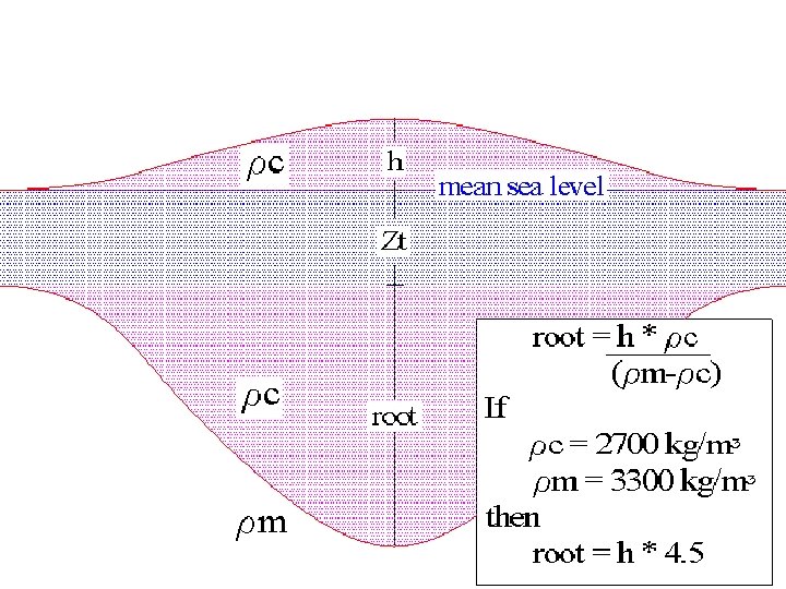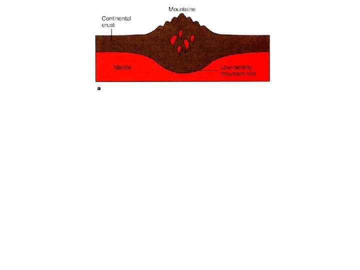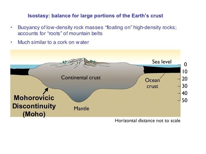 • Principle of Isostacy is Earth’s crust is “floating” on denser mantle. – Like an iceberg, only 10% is above the water no matter the size of the iceberg Mountain Crust Mantle root