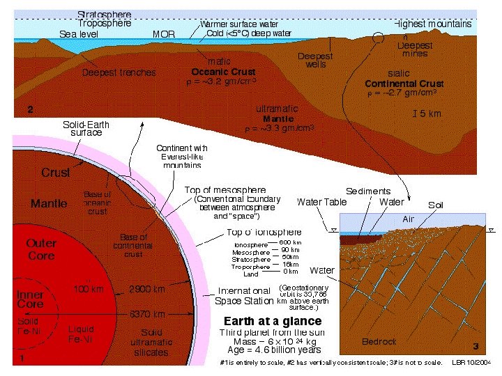 3. Crust • a) Continental Crust: – mainly granodiorite (P-waves 8 km/sec) – 35 km aver’ thickness – 20 km at rifts – 90 km at Himalayas