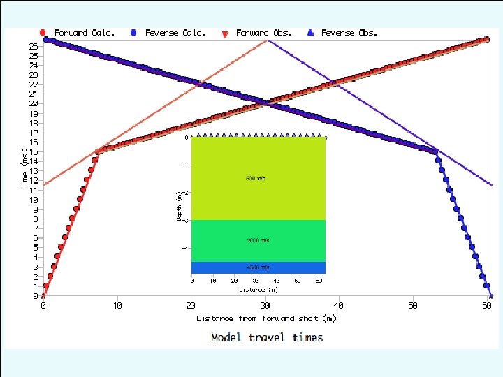 B V 1 = 500 m/s z A V 2 = 2000 m/s Basically have a difference in the intercept times on one part of the geophone string relative to the other: