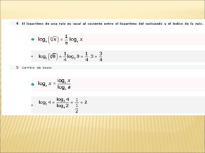 EJEMPLO Definición de logaritmo Siendo a la base x el número e y el logaritmo.