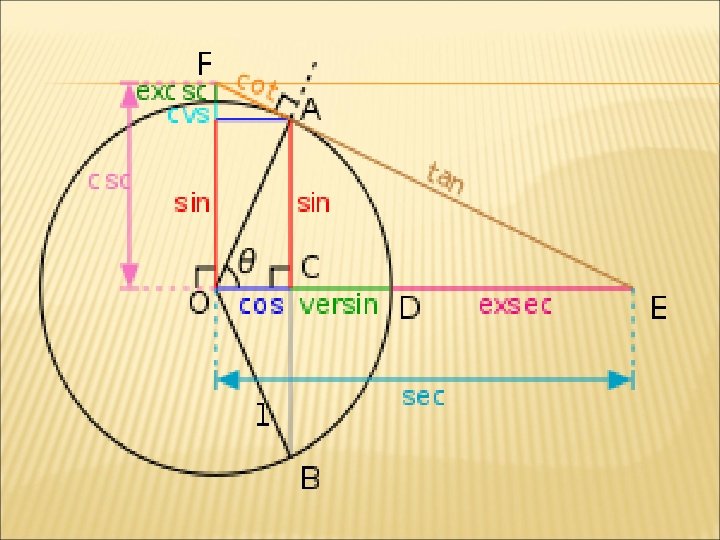 La figura muestra las funciones trigonométricas asociadas a un ángulo agudo ubicado en una circunferencia co ta ng en io rad seno cosecante te coseno tan ge nt e secante