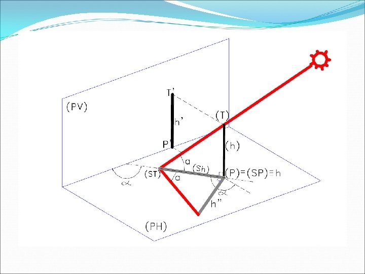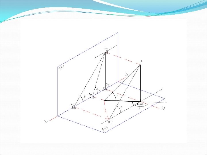 PLANO VERTICAL OU PERPENDICULAR AO PH Caracteriza-se por traço vertical perpendicular à LT e seu traço horizontal pode ter qualquer direção diferente de 90 graus. Qualquer ponto contido nele se projeta horizontalmente sobre seu traço horizontal. Qualquer figura contida nele não se projeta em VG.