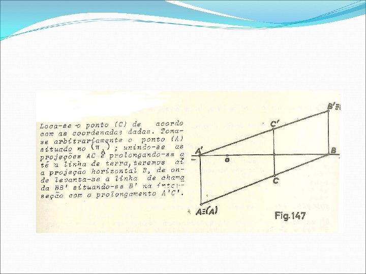 147. Traçar a épura de uma Reta Qualquer AB com. O ponto A no Plano Horizontal Anterior, . O ponto B no Plano Vertical Superior, e. Passando por um ponto C (2, 1, 1)