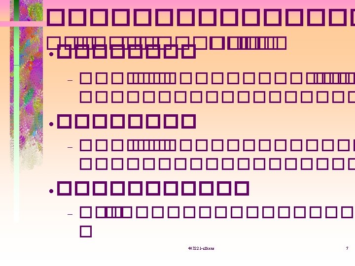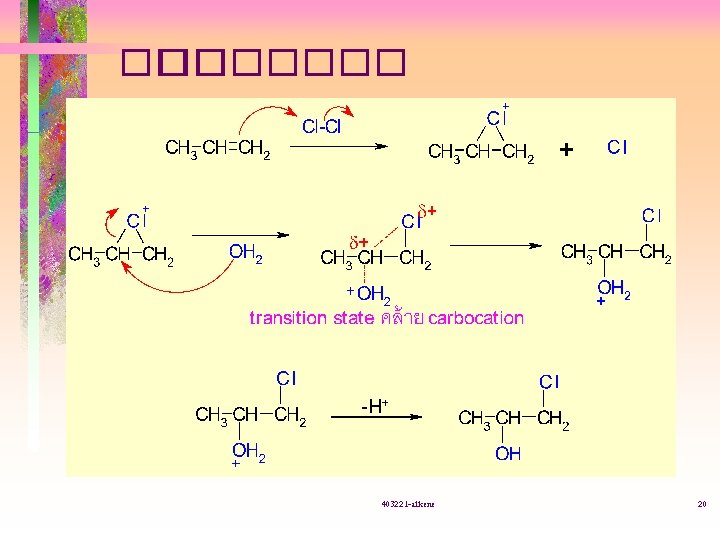 Geometric isomer 403221 alkene 2 Geometric isomers 403221 Slides: 26 Download presentation ������ Geometric isomer 403221 -alkene 2 Geometric isomers �� ������ 403221 -alkene 4 E-2 -pentene Z-3 -chloro-3 -hexene E-1 -bromo-1 -chloro-2 -fluoroethene E-3 -chloro-3 -hexene Z-1 -bromo-1 -chloro-2 -fluoroethene 403221 -alkene 6 ������ . 1 Dehydrohalogenation ������ R-X 403221 -alkene 8 ��������� dehydrohalogenation ��� E 2 • ���KOH ������ (alcoholic KOH) Na. OC 2 H 5/C 2 H 5 OH, Na. OCH 3/CH 3 OH Na. NH 2/ NH 3 • ������ • ����� C 2 H 5 OH, CH 3 OH 403221 -alkene 9 Saytzeff rule ��������� dehydrohalogenation ����������� alkene ����������� �� ������ alkene R 2 C=CR 2 > R 2 C=CHR > R 2 C=CH 2 > trans-RCH=CHR > cis-RCH=CHR > RCH=CH 2 > H 2 C=CH 2 403221 -alkene 10 . 2 Dehalogenation ��� vicinal dihalide 403221 -alkene 11 . 4 Reduction ������ Lindlar’s catalyst = Pd/Ca. CO 3 ����� Pd/Ba. SO 4 ���� Ni 2 B (P-2) ����� 403221 -alkene 13 ������ Addition . 1 Hydrogenation 403221 -alkene 14 . 2 Electrophilic addition Electrophile (E+) reagent ������������ 2. 1 addition of HX ������ Markovnikov addition H+ ���� electrophile ������ C ����� H ������� 403221 -alkene 15 �� ����� 403221 -alkene 16 2. 2 addition of H 2 SO 4 2. 3 addition of H 2 O 403221 -alkene 17 2. 4 addition of X 2 �� ������� )anti-addition( 403221 -alkene 18 2. 5 addition of X 2 + H 2 O �������� anti-addition Markovnikov (Br, Cl ���� electrophile ( 403221 -alkene 19 2. 6 addition of alkene (dimerization( 403221 -alkene 21 2. 7 addition of free radical (HBr + peroxide( �� ����� (������� anti. Markovnikov( Br. radical ���� electrophile ����� C 403221 -alkene 22 2. 8 hydroboration - oxidation 403221 -alkene 23 . 3 Oxidation 3. 1 hydroxylation 403221 -alkene 24 3. 2 ozonolysis ������������� alkene 403221 -alkene 25 ����� • ���������� a-pinene, A, B, C • ���������� propene ��� propane 1 -bromopropane ��� propane t-butyl alcohol ��� 2 -methylpropane 2 -bromobutane ��� 1 -bromobutane 403221 -alkene 26