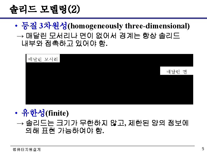 솔리드 모델의 표현방식(2) -BREP, B-rep BREP(Boundary Representation) describes the geometry of an object in terms its boundaries, namely vertices, edges, and surface 컴퓨터지원설계 8