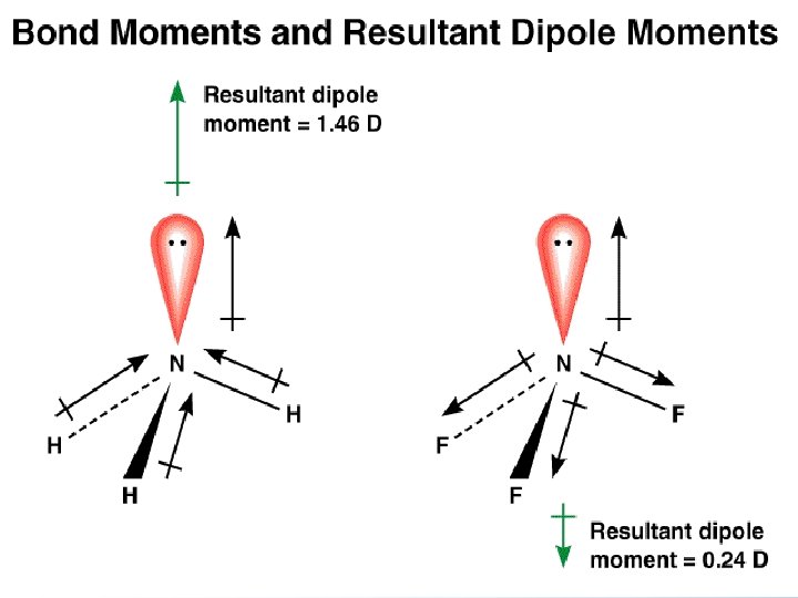 Polarita molekul • Vazebný dipól vyjadřuje polaritu vazby (vektorová veličina): • Dipólový moment je celkový dipól molekuly (vektorový součet, dipólový moment tedy může být nulový i v případě nenulových vazebných dipólů): • Jednotky: debye (D), 1 D = 33. 36 x 10 30 Cm. • Polární vazba vzniká mezi atomy s odlišnou elektronegativitou. – Elektronegativnější atom bude mít částečný záporný náboj ( ) – Elektronově chudší část vazby vykazuje částečný kladný náboj ( +) • Př. : Odhadněte jestli molekuly NH 3, H 2 O, CO 2 mají dipólový moment. • Př. : Určete který z izomerů (cis- nebo trans-) C 2 H 2 Cl 2 má dipólový moment.