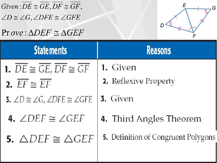 Theorem 4. 3 Third Angle Theorem l If two angles of one triangle are congruent to two angles of a second triangle, then the third angles of the triangle are congruent.