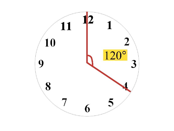 What angle do the hands of the clock make? • 4 lots of 30 degrees. • 120 degrees. • OR the reflex angle is 240 degrees.