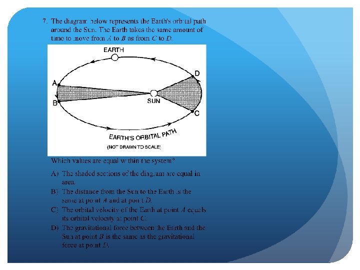 Kepler’s Third Law The closer a satellite is to its primary, the faster it moves in its orbit. The closest planets move the fastest. Where is the Planet moving The fastest? C