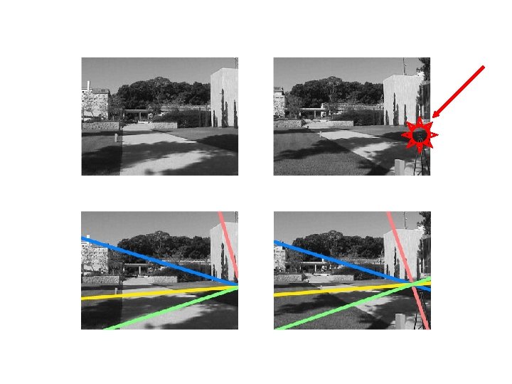 Fundamental Matrix n n F, the fundamental matrix, too is rank 2 F has 7 d. o. f. (9 entries, homogeneous, and det. F=0)