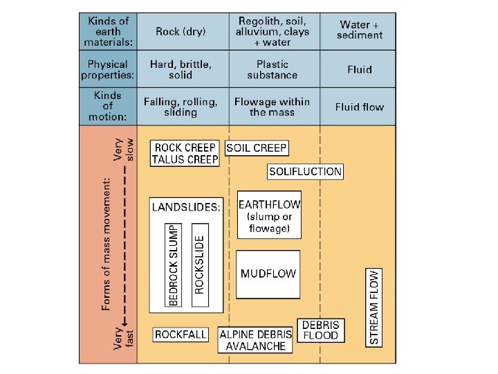 Mass rörelse • Rörelse av regolit och berggrund genom direkt påverkan av gravitation.