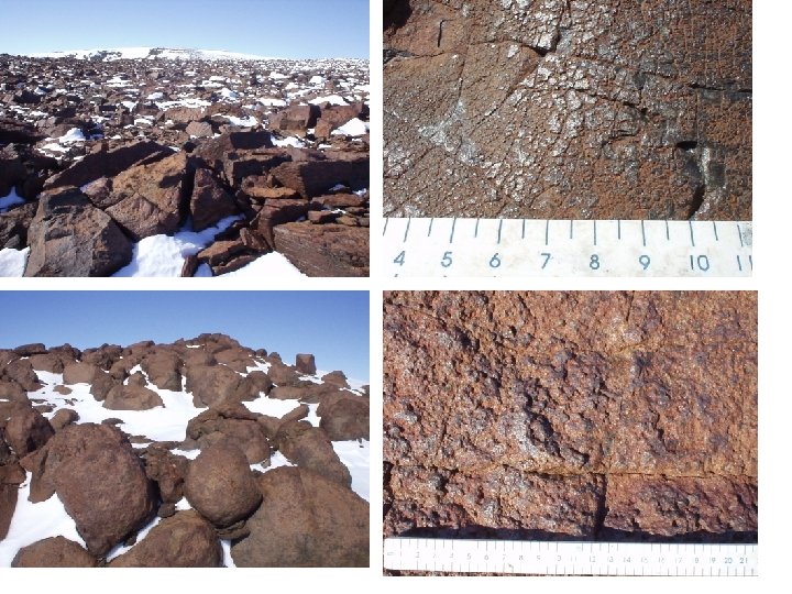 Hydrolys och Oxidation • • • Bergarts mineraler reagera med vatten för att producera nya mineraler. Producerar mjuk, lera-artig material som lätt eroderas. I torra klimaten kan hydrolys resulteras i grusvittring