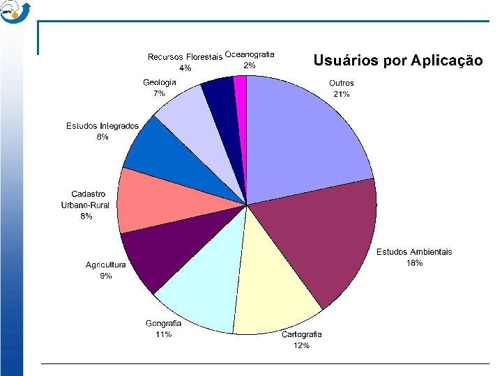 Investimento em Capacitação n Pós-graduação Tecnologia de Informação: 8 Doutorado, 20 Mestrado ¨ Sensoriamento Remoto e GIS: 4 Doutorado, 30 Mestrado Treinamento ¨ Cursos de curta duração: 1. 000 pessoas em 3 anos (2001 -2003) ¨ n n Material didático Livros e apostilas: 4 livros, 10 tutoriais (on-line) ¨ Documentação on-line ¨