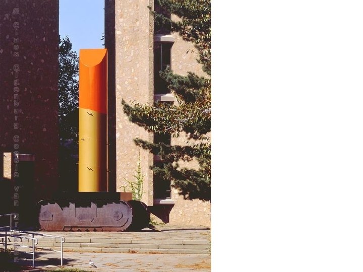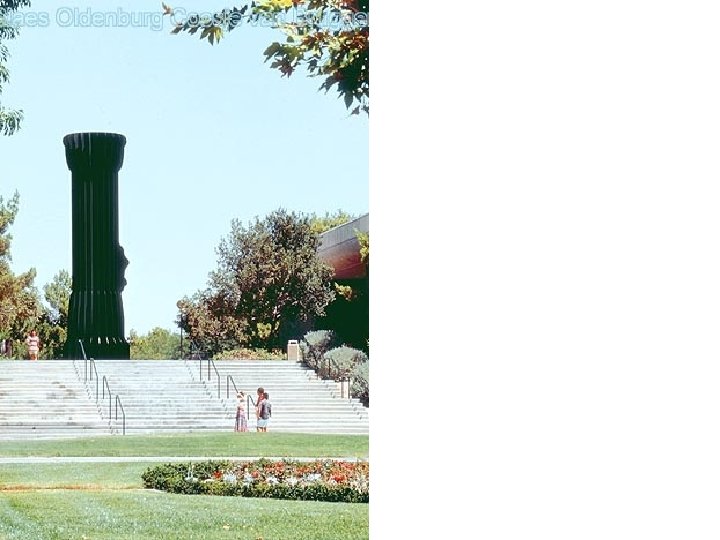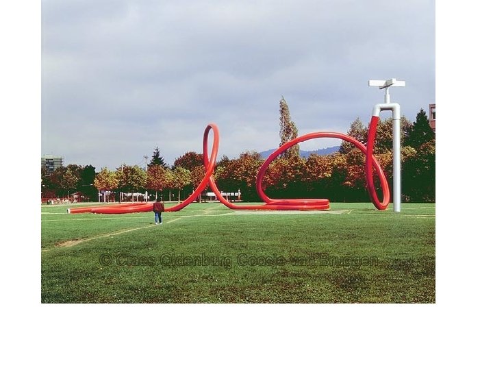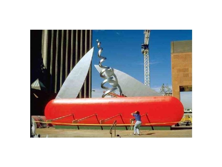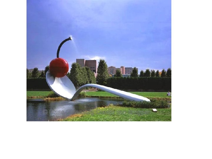 • 1965 – begins his “monument” proposals – A single object was to be enlarged to gigantic scale and installed at a specific site • By taking mundane objects and presenting them out of context and in such colossal proportions, Oldenburg forced viewers to reassess their daily lives and values. • His work was a social commentary on American popular culture and, by association, on contemporary society's approach to life itself.