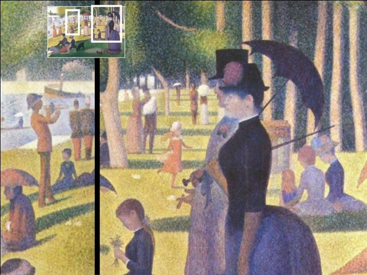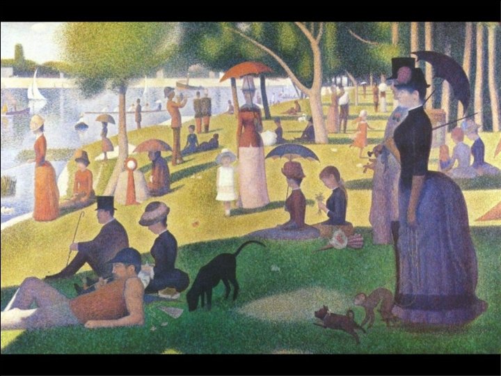 “As Modelos” Óleo sobre tela. Detalhe do quadro “Tarde de Domingo na Ilha de La Grande Jatte”, no atelier do artista. CMYK Padrão das cores primárias na impressão. Com apenas 4 cores, magenta, ciano, amarelo e preto, a impressora faz uma infinidade de outras cores apenas por aproximação destes pontos que visto à distância possibilitam vermos cores diferentes. Seurat faleceu em 1891 sem que tivesse qualquer noção das conseqüências de seus estudos na arte gráfica do século XX, na invenção da televisão e da imagem digital.