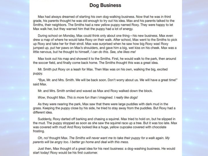 This response scored a 2 score point 2 • the student is attempting to address the prompt in some part of the response. • uses few relevant details from the passage(s) • may paraphrase details from the passages in a general way • little, if any, details and descriptions related to the story • may not be very organized