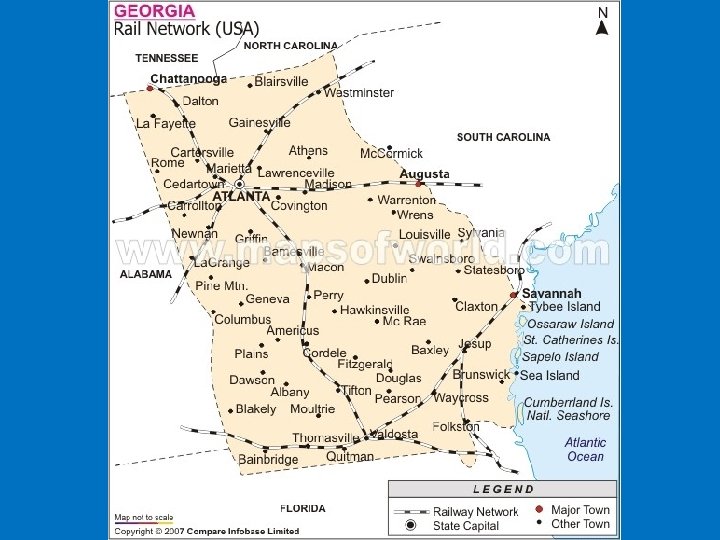 Atlantic Ocean Georgia has more than 100 miles of coastline Begins at the Savannah River and goes to the St. Mary’s River