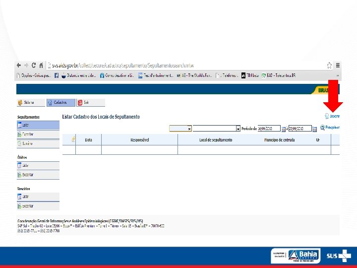 ETAPA 1 Página web para notificação de locais de sepultamento Portal SVS Collect http: //svs. aids. gov. br/collect/public/login. page