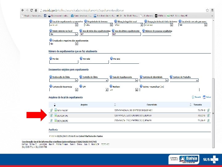 Evolução semestral do cadastro de cemitérios, segundo ano de notificação no Portal SVS Collect. Bahia, 2010 -2013. 10/01/2013 N = 2. 331 Fonte de dados: Portal SVS Collect 22/07/2013 N = 2. 950 Data de atualização: 22/07/2013