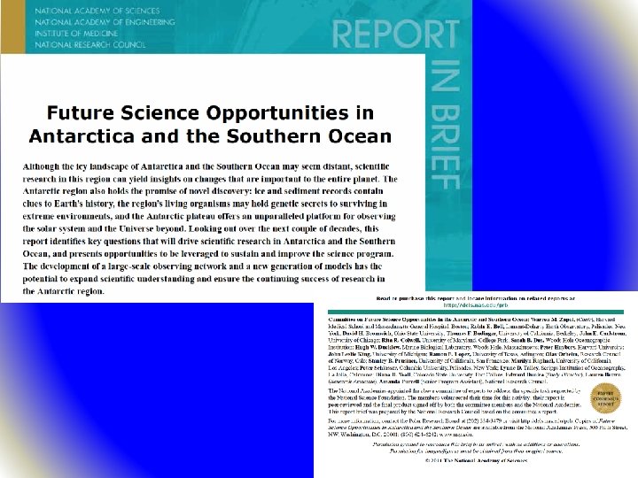 Some Key Issues • The variability of the Antarctic climate system • The major impact of the ozone hole • The impact of climate change on marine and terrestrial ecosystems • Mass balance and the glaciological changes in West Antarctica • How the physical and biological environment will evolve over the next century and how we can produce improved predictions.