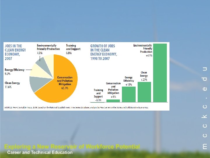 What Role Can Community Colleges Play? • Starting point for many students, and in particular for the economically disadvantaged • Many green jobs require more than a diploma but less than a four-year degree • Major feeder to 4 -year colleges and research universities and also directly to the workforce • Responsive to community and employers – community colleges are required to have external advisory boards for career programs