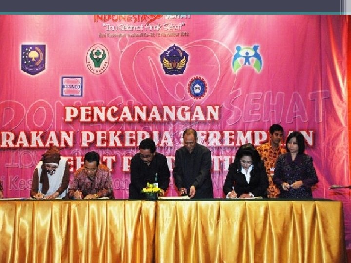 GP 2 SP KESEPAKATAN BERSAMA ANTARA : • KEMENTERIAN KESEHATAN DENGAN : • KEMENTERIAN DALAM NEGERI • KEMENTERIAN TENAGA KERJA DAN TRANSMIGRASI • KEMENTERIAN PEMBERDAYAAN PEREMPUAN DAN PERLINDUNGAN ANAK • APINDO • KSPSI DICANANGKAN PADA 13 NOVEMBER 2012 DI JAKARTA