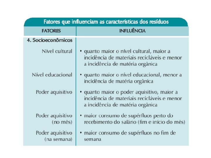 CARACTERÍSTICAS DOS RESÍDUOS SÓLIDOS ü Físicas; ü Químicas; ü Biológicas.