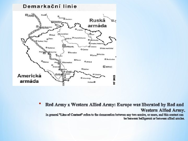 • • 1947 - H. Truman – Doctrine against Communism • http: //www. history. com/speeches/the-truman-doctrine • 1946 – W. Churchill – Iron Curtain • http: //www. youtube. com/watch? v=jvax 5 VUvj. WQ • 1946 – G. Marshall – Marshall Plan, Czechoslovakia and Poland had to refuse – definitive line between East and West • http: //www. oecd. org/general/themarshallplanspeechatharvardu niversity 5 june 1947. htm