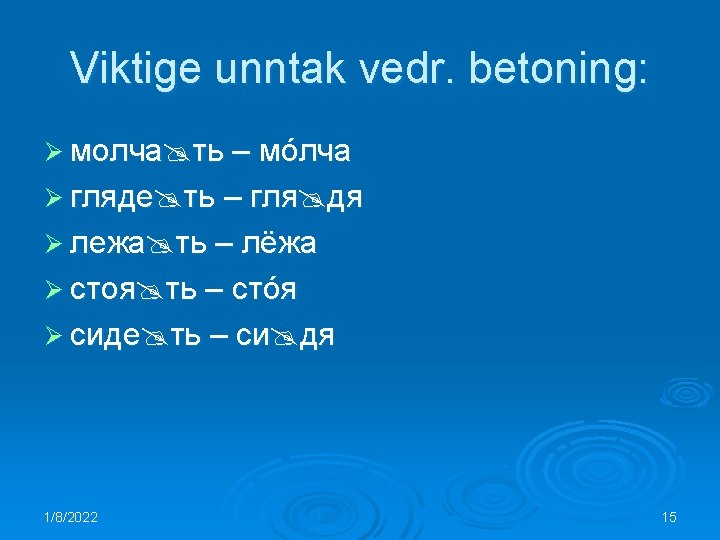 Dannelse forts. Ø Betoningen følger stor sett pres. 1. p. sing. 1/8/2022 13
