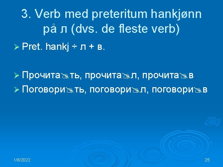 2. Verb med preteritum hankjønn uten л: Ø Preteritum hankj. + ши. Ø Привле чь, привлёкши. 1/8/2022 24