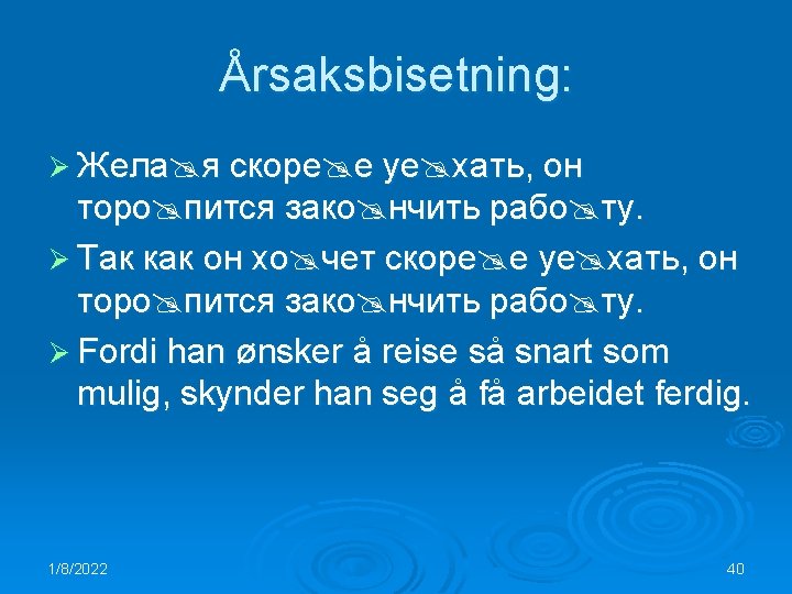 Generelt forts. Ø Relativ leddsetning: Mannen som stod foran meg, er rektor ved universitetet. Ø Adverbiell leddsetn: Mens han lå på sengen, leste han avisen. 1/8/2022 3