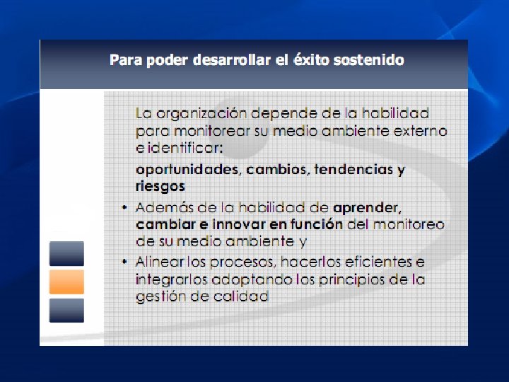 NORMA ISO 9000 : Son los fundamentos y el vocabulario empleado en la norma ISO 9001. La serie de normas de ISO 9000 consta de requisitos y directrices que permiten establecer y mantener un sistema de calidad en la compañía. Requieren de sistemas documentados que permitan controlar los procesos que se utilizan para desarrollar y fabricar los productos. Estos tipos de normas se fundamentan en la idea de que hay ciertos elementos que todo sistema de calidad debe tener bajo control, con el fin de garantizar que los productos y servicios de calidad se fabriquen en forma consistente y a tiempo. El sistema ISO 9000 se refiere a un grupo de “norma sobre el sistema de calidad” de cualquier tipo de empresa, sea esta una industria, un banco o una oficina del gobierno, pequeña o grande. NORMA ISO 9001 La Norma ISO 9001 ha sido elaborada por el Comité Técnico ISO/TC 176 de ISO Organización Internacional para la Estandarización y especifica los requisitos para un buen sistema de gestión de la calidad (SGC), que pueden utilizarse para su aplicación interna por las organizaciones, para certificación. Contiene la especificación del “modelo de sistema de gestión de la calidad”.