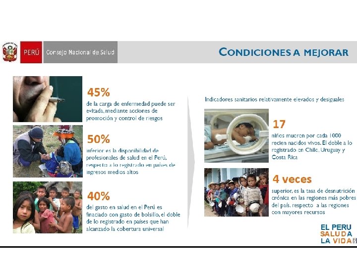 Proyectos con componentes de mejoramiento continuo Proyecto 2000 Proyecto Salud y Nutrición Básica Ÿ Se plantea mejorar la salud de la madre y el niño Ÿ Incorporó un sistema de acreditación de servicios materno infantiles (HC y CC) Ÿ Enfocó en la capacitación Ÿ Inicia enfocando en mejoramiento de servicios materno-infantiles Ÿ Después se extiende al mejoramiento institucional Ÿ También en la segunda mitad de los ‘ 90 Ÿ Interviene en 4 DISAs del país: Piura, Chota, Lima Norte (UTES SJL) y Cusco