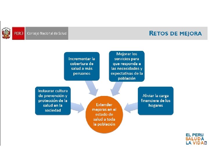 Visión de la Calidad en la Atención de Salud • La Sociedad Peruana al 2020, goza de un Sistema de Salud que brinda atención segura y efectiva; oportuna, equitativa e integral; informada y consentida; respetuosa del derecho y dignidad de las personas; sensible a los enfoques de género, etapas de vida e interculturalidad; y orientada a contribuir al logro del más alto nivel posible de salud física, mental y social.