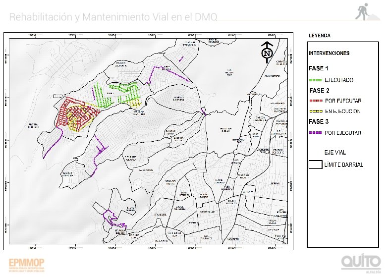 INTERVENCIONES COMPONENTE INFRAESTRUCTURA VIAL – REHABILITACIÓN % VIAL ACTIVIDAD REHABILITACIÓN VIAL CALLE EL TELÉGRAFO, DESDE LA 6 DE DICIEMBRE HASTA EL FINAL DE LA VÍA REHABILITACIÓN DE LA CALLE GALO PLAZA LASSO, FASE I CARRILES LATERALES, DESDE LA AV, LUIS VACCARI HASTA EL KM 0+000 DE LA PANAMERICANA NORTE, REHABILITACION PISTA ATLETICA PARQUE SANTA ANA, SECTOR SANTA ANA, PARROQUIA LA MAGDALENA REHABILITACION VIAL AV, EL CARACOL DESDE CALUMA HASTA LA AV, SIMON BOLIVAR REHABILITACIÓN VIAL DE LA CALLE MANGLAR ALTO, DESDE LA AVENIDA MORÁN VALVERDE HASTA LA CALLE QUIMIAG, PARROQUIA SOLANDA, TRABAJOS DE REHABILITACIÓN VIAL DE LA CALLE 21 DE AGOSTO, DESDE LA AVENIDA PEDRO VICENTE MALDONADO HASTA LA AVENIDA SIMÓN BOLÍVAR, PARROQUIA LA ARGELIA REHABILITACIÓN PROYECTO INTEGRAL GUAPULO: PROYECTO MI CALLE (E 13 VALLADOLID, N 34 G VIZCAYA, E 14 LUGO, N 34 D GUIPOZCOA) - FRANJA VERDE, VIAL PARQUITOS, CHICANAS, EXTENSIONES DE ACERAS. REHABILITACION DE LA CALLE MANUEL BARRETO DESDE LAS AVS, CORUÑA HASTA GONZALEZ SUAREZ ESTADO EN EJECUCIÓN AVANCE ADM, ZONAL 45, 00 EUGENIO ESPEJO CALDERON EJECUTADO 100, 00 EJECUTADO 100, 00 REHABILITACIÓN EL LABRADOR CARRIL SUPERIOR SENTIDO SUR - NORTE EJECUTADO 100, 00 EUGENIO ESPEJO REHABILITACIÓN EL LABRADOR CARRIL SUPERIOR SENTIDO NORTE -SUR Y EJECUTADO 100, 00 EUGENIO ESPEJO EJECUTADO 100, 00 REHABILITACIÓN VIAL: ALEXANDER VON HUMBOLDT , EJECUTADO 100, 00 EUGENIO ESPEJO REHABILITACIÓN VIAL: CALLE CHIRIBOGA EN BARRIO LA CONCEPCIÓN EJECUTADO 100, 00 EUGENIO ESPEJO REHABILITACIÓN VIAL: CHARLES DARWIN EJECUTADO 100, 00 EUGENIO ESPEJO REHABILITACIÓN VIAL: DE LAS ALONDRAS EJECUTADO 100, 00 EUGENIO ESPEJO REHABILITACIÓN VIAL: 12 DE OCTUBRE DESDE CRISTOBAL COLON HASTA PATRIA ELOY ALFARO EUGENIO ESPEJO