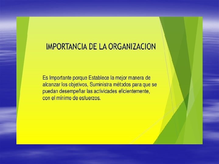 § Elementos que componen a una organización § Objetivos Generales Ej. Obtención de ganancias, producción de bienes, prestación de servicios, comercialización, etc. § Objetivos Específicos. Ej. Aumento del capital, captación del cliente, etc. § Factores de la producción Son aquellos factores que intervienen en la producción. Ej. La tierra, el trabajo, y el capital § Dirección Es el proceso que se ejerce, para amortizar los objetivos individuales con los de la organización. § Recursos Materiales Ej. Edificios, rodados, muebles y útiles, instalaciones, etc. § Recursos Inmateriales El capital, la marca, la imagen, etc. § Recursos Humanos El grupo humano que sostiene la organización.