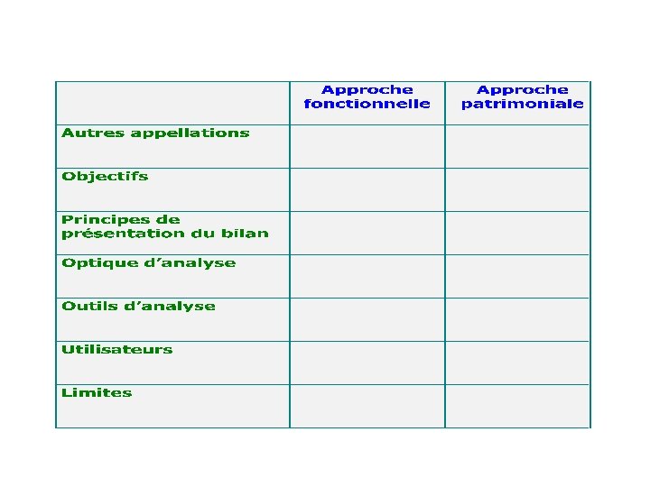 Devoir à rendre Présentez un tableau comparatif des deux approches fonctionnelle et patrimoniale de l’équilibre financier