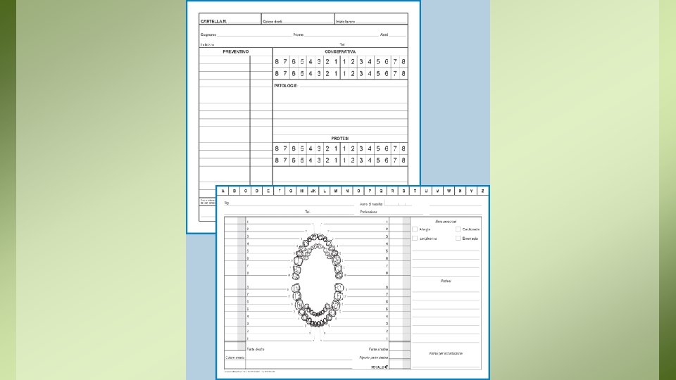 Informazioni Cliniche • Dati obiettivi dello stato di salute generale e particolare (odontoiatrica) • Attività diagnostiche • Attività terapeutiche