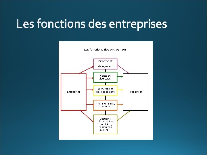 Les fonctions de l’entreprise • Fonction économique : • Production • Prévision • Gestion • Coordination négociation • Innovation