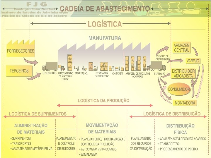 Cadeia Logística Integrada Cadeia logística integrada com a utilização de toda infra-estrutura disponível (máquinas, equipamentos, tecnologia e sistema de gestão) Fluxo de Estoques Operações Distribuição Fluxo de Informações Clientes Fornecedores Suprimentos