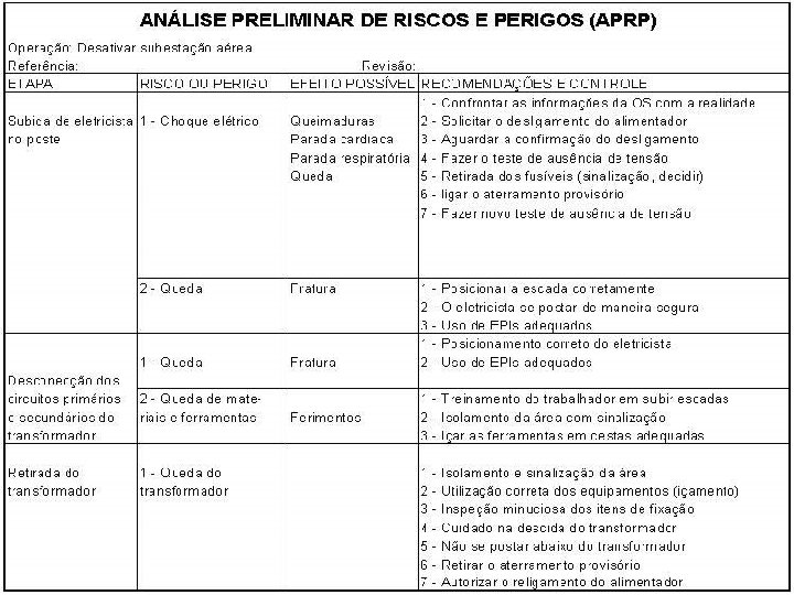 GESTO DE RISCOS APR Anlise Preliminar de Riscos