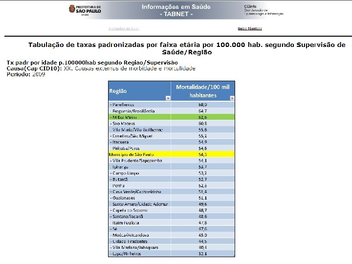 AIHs pagas em 2009 (especialidade: psiquiatria) Fonte: TABNET PMSP