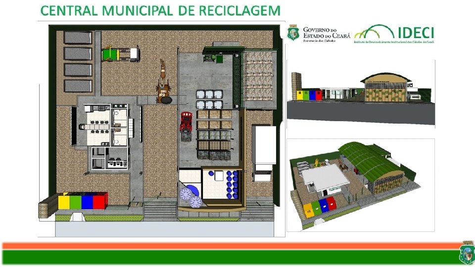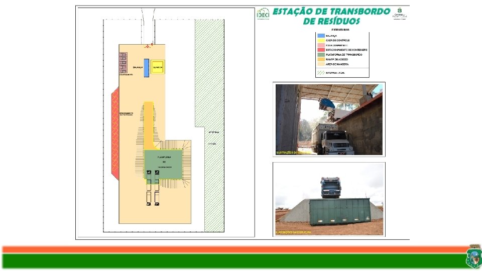 SECRETARIA DAS CIDADES – PROJETO GIRS CTR - Aterro de rejeitos; - Tratamento resíduos de saúde; - Tratamento de resíduos da construção civil; - Compostagem orgânicos de grandes geradores. ETR - Armazenamento temporário de resíduos provenientes de municípios distantes da CTR. Eixo 1: Infraestrutura CMR - Triagem, armazenamento e comercialização de recicláveis; - Armazenamento temporário de materiais volumosos em pequenas quantidades.