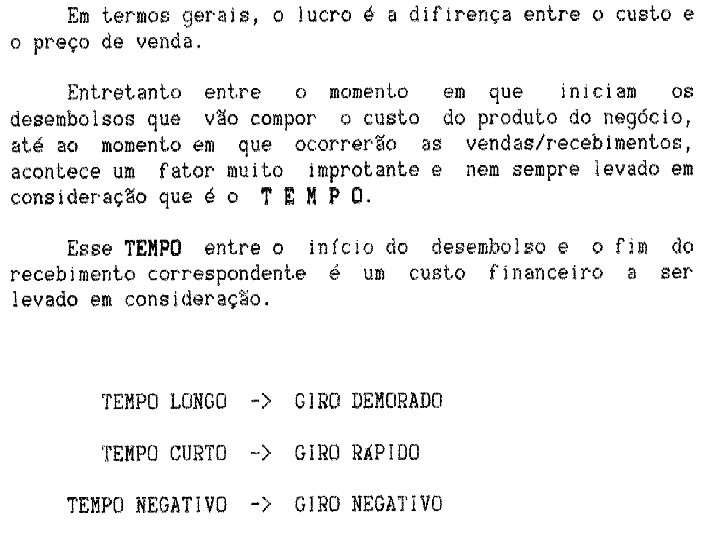 Custo do item Influência no Capital de Giro Influência sobre a Taxa de Retorno de Capital